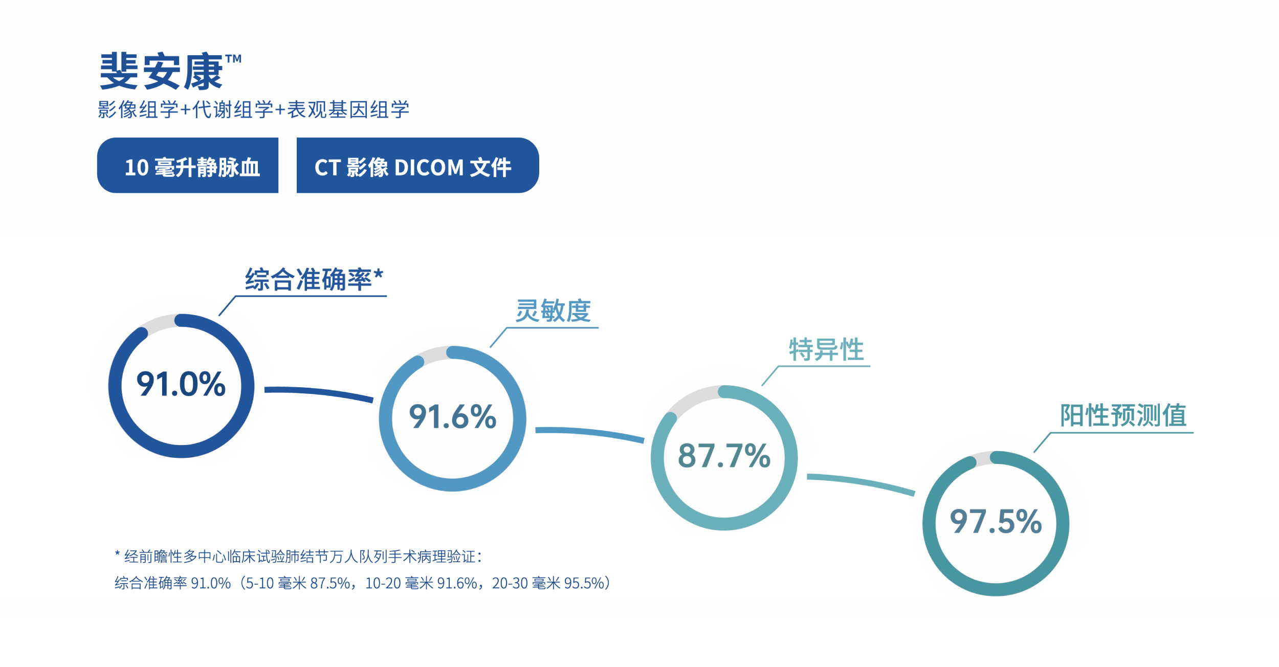 泰莱生物拥有液体活检多组学技术平台和深厚的科研积累,学术成果相继被 Nature Medicine、Cell Research、Nature Communications、Cancer Research、Radiology 等顶级学术期刊收录,并联合上海市肺科医院、山东省胸科医院、四川大学华西医院等数十家三甲医院启动“MISSION计划”—— 基于多组学的肺结节良恶性鉴别诊断前瞻性多中心临床研究,拥有规模近两万例的前瞻性多中心肺部结节(获得病理诊断结果)研究队列,旨在解决肺结节良恶性鉴别的临床困扰。斐安康™ 是 MISSION 计划研究的成果结晶。